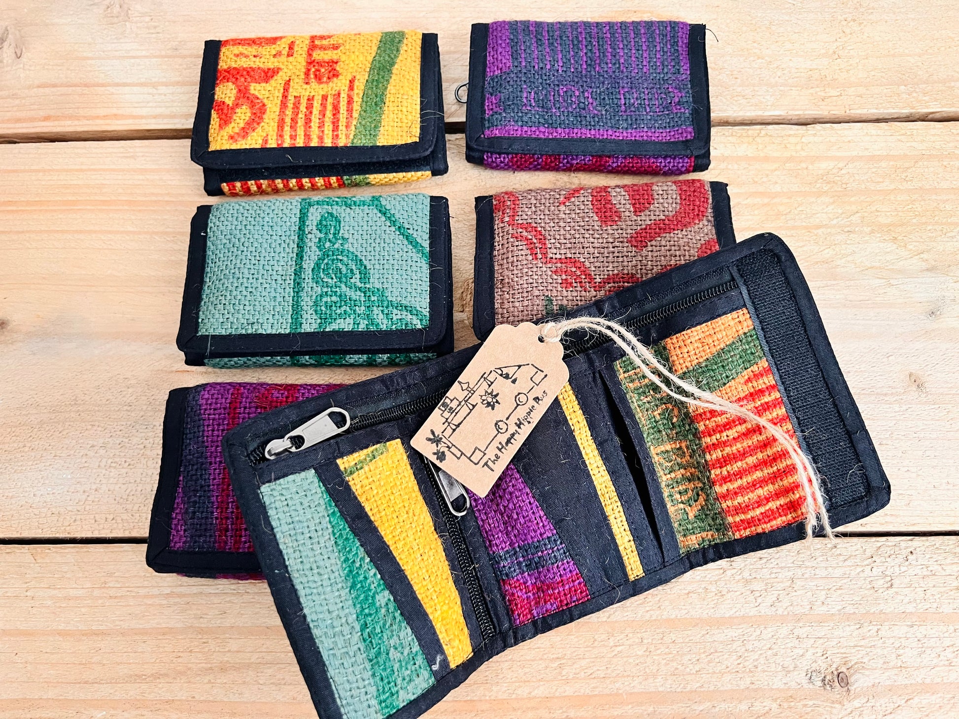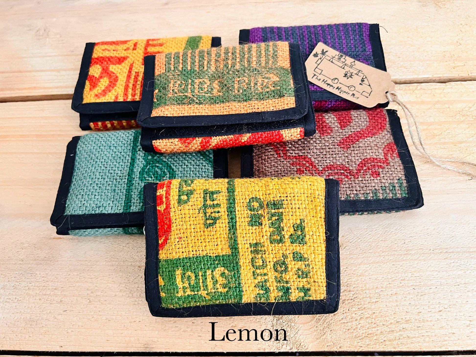 These wallets are all handmade in Nepal from recycled rice sacks so they are awesome for the environment! They come in 5 different colours all with a sturdy black trim around the edge.
