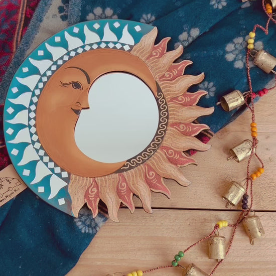 The celestial sun and moon motif adds a sense of warmth and harmony, making this piece ideal for living rooms, hallways, bedrooms or creative spaces. Subtle variations in colour and detailing are part of the handmade charm and make every mirror unique.