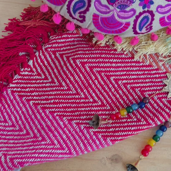 🌈 Handwoven Rainbow Stripe Throw: Crafted from 80% recycled cotton and 20% other recycled fibres, this eco-friendly throw features a bold herringbone weave. Soft, breathable, and perfect for layering over your sofa, bed, or meditation space.