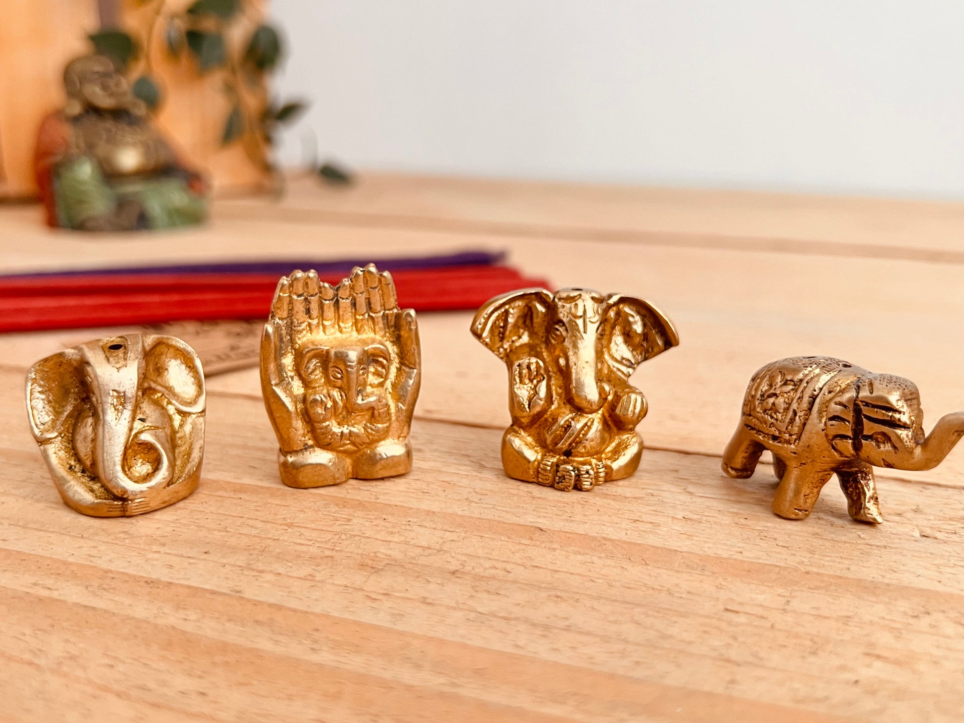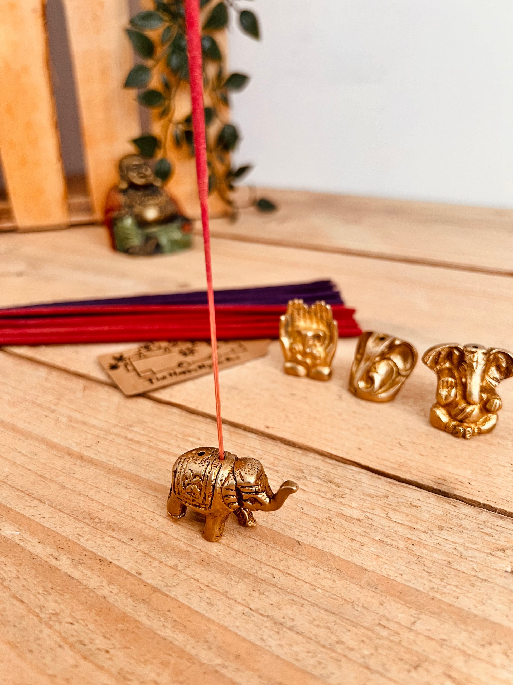 Mini Brass Elephant & Ganesha Incense Stick Holders
