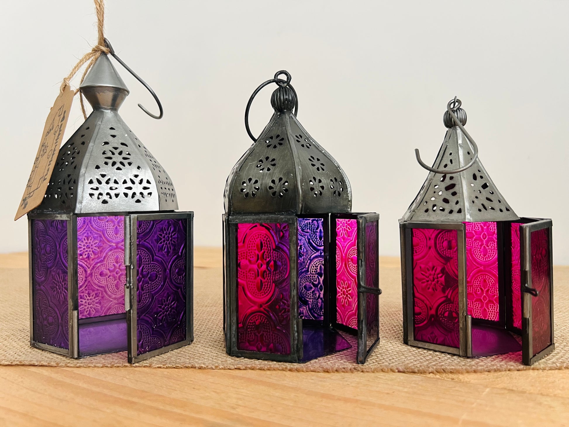 Add some purple vibes to your home with this beautiful collection of three Moroccan Style lanterns.